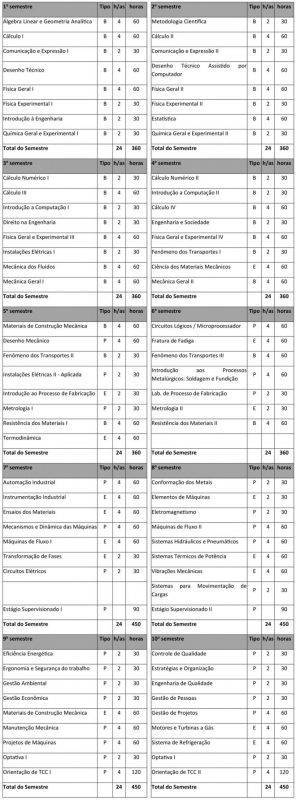 A concepção do curso também considerou a necessidade do profissional egresso de Engenharia Mecânica ter capacidade para executar as atividades previstas na resolução do CONFEA/CREA nº. 1.010/2005 de 22 de agosto de 2005, que trata das atribuições para o desempenho de atividades exigidas para o exercício profissional, que sejam: